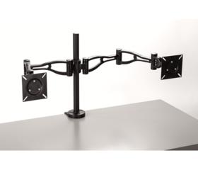 Dois braços para monitor totalmente ajustáveis para uma visualização perfeita